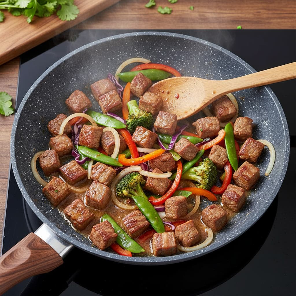 Tecnologia antiaderente de alta durabilidade que impede os alimentos de grudarem, facilitando o preparo e a limpeza.